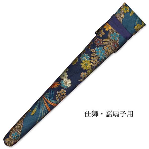 扇子7.5寸用扇子袋<男女兼用>金銀刺繍/紬調 東/黒 La019
